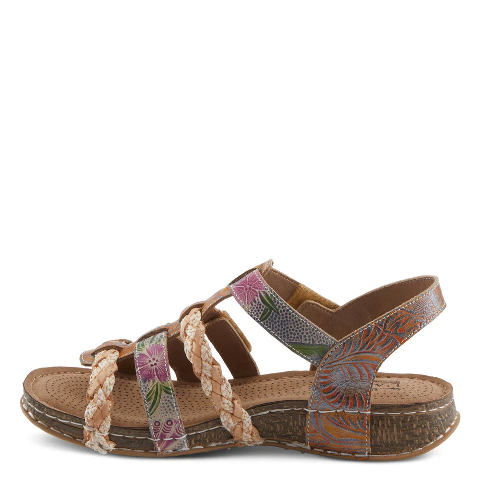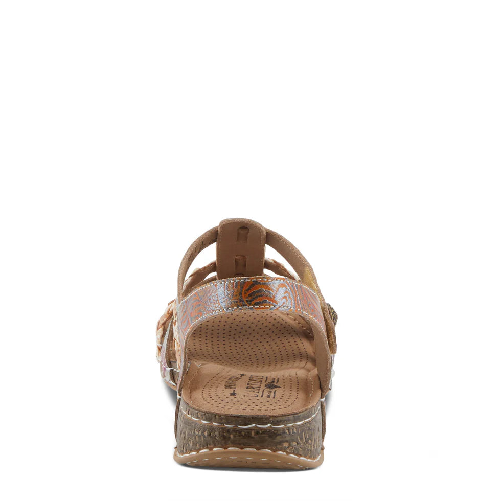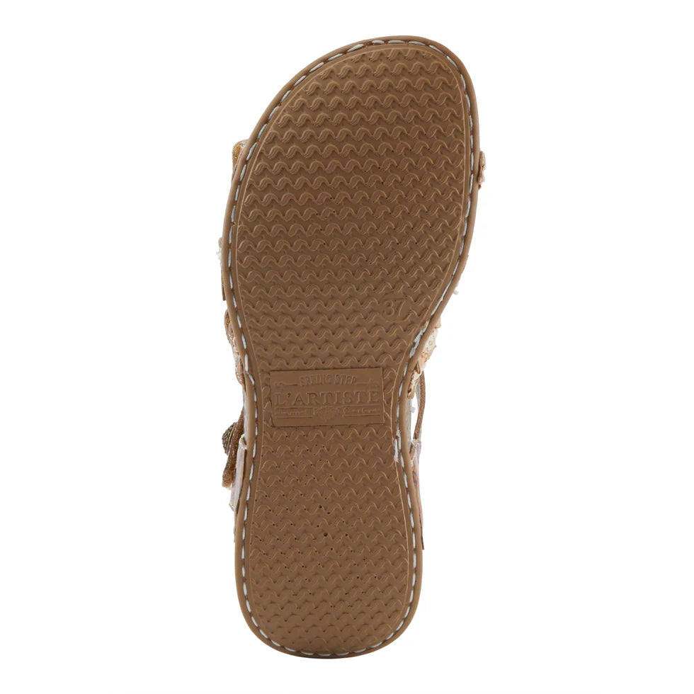 - This stylish sandal is adorned with small and dainty antique embellishments, adding a touch of elegance to any outfit.